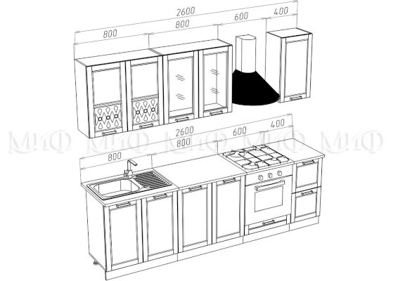Кухонный гарнитур Милано 2,0 м Компоновка 2 (Миф)